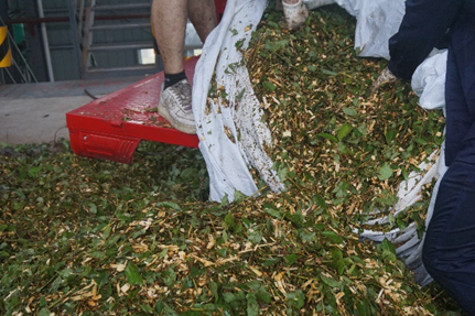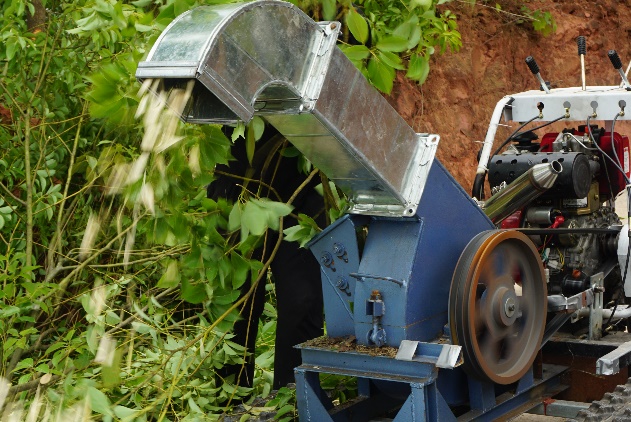 粉碎機正在粉碎油樟樹葉