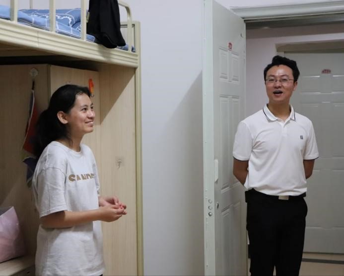 學院領導和全體新生輔導員在走訪過程中,親切地詢問了新生們的情況,對來校報到的過程是否順利、校園環境和寢室條件是否滿意等問題進行了解。新生們紛紛表示,報到過程中各環節十分順暢,并且感受到了學院的溫暖和學長學姐們的熱情,對即將開啟的大學生活充滿了期待。學院領導老師們還提供了有關學習計劃、校園生活、人際交往等方面的建議,引導同學們積極面對學習和生活中的挑戰。新生輔導員也叮嚀宿舍成員要友愛互助,重視安全、衛生,樹立優良寢風,要盡快投入大學生的角色,盡快適應大學生活。