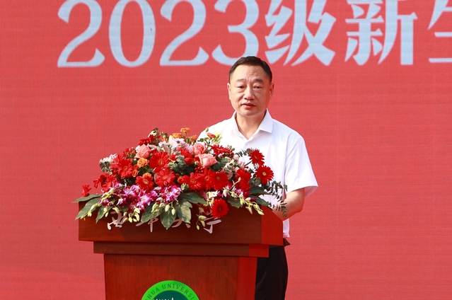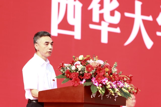 “歡迎你們加入西華大學,加入西華學子的隊伍,讓我們共同開啟新的征程!”校黨委書記劉樹根在主持開學典禮時指出,當今世界正在經歷百年未有之大變局,同學們正處于一個充滿機遇和挑戰的時代,施展抱負的舞臺無比寬廣。他希望同學們在校期間做好大學生涯規劃,轉變學習模式,開闊知識眼界、勇擔時代重任、實現人生價值;展現青春風采,用更多元、更開闊的眼光來學習和實踐,堅持追尋夢想,永葆熱情,成為西華闊步前行的生力軍;珍惜時光,在西華大學潛心學習,追求進步,做有理想、有本領、有擔當的新時代中國青年。劉書記指出,凡成大事者,必日積月累、持之以恒,希望同學們務必熟讀學生手冊,懂規矩、守底線、知敬畏,勤而行之、日有所進,努力成長為堪當民族復興重任的時代新人,在青春的賽道上跑出屬于自己的精彩。