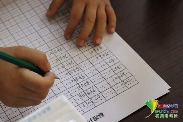圖為小朋友正在做算術練習。為鞏固和檢驗學習成果。中國青年網通訊員李奇峰 攝