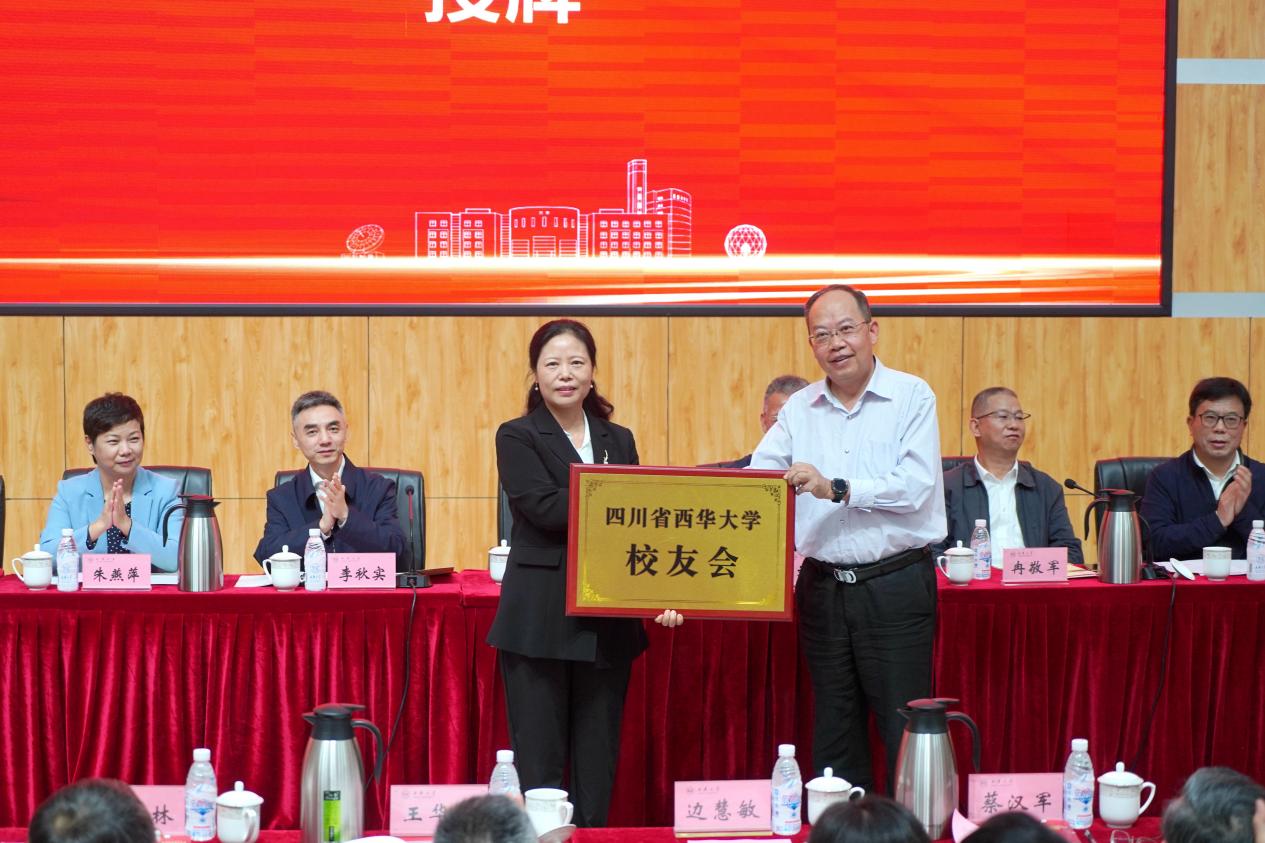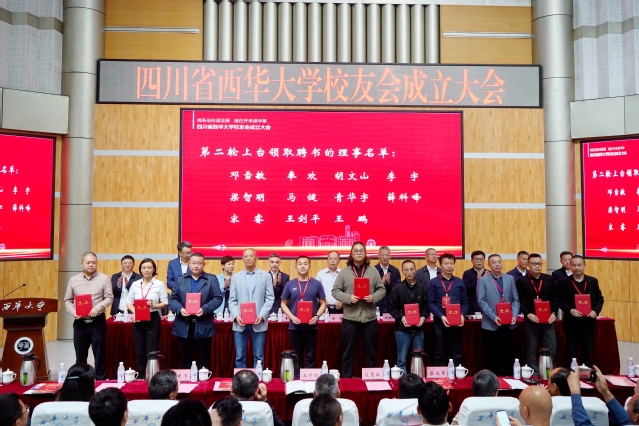 省民政廳二級巡視員冉敬軍宣讀了四川省民政廳《關于準予四川省西華大學校友會成立登記的批復》文件。國家督學,中共四川省委教育工委委員,省政府教育督導委員會專職副主任,教育廳總督學傅明為四川省西華大學校友會授牌。隨后,主席臺領導為首屆四川省西華大學校友會理事、監事頒發了聘書。