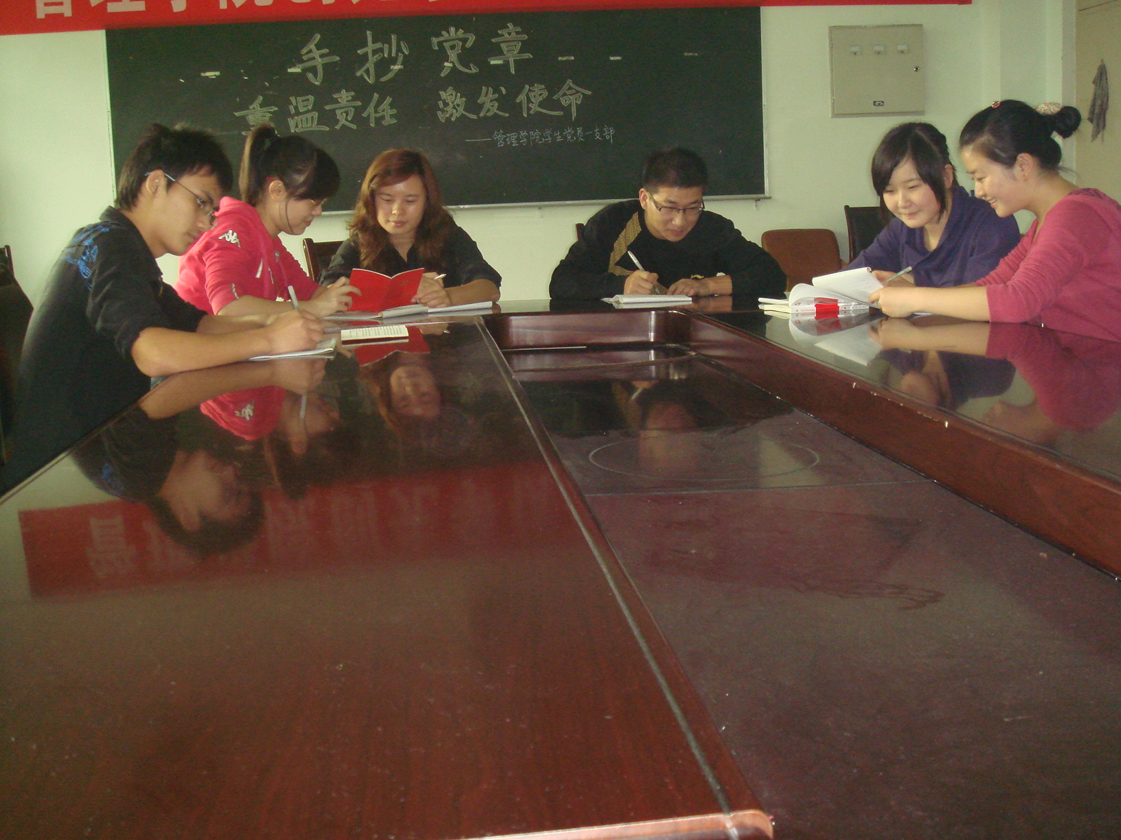 ????? 10月21日下午16:00,管理學院學生一支部舉行了“手抄黨章、重溫責任、激發使命”活動。