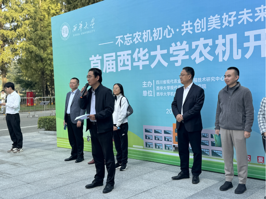 強國必先強農,農強方能國強。為扎實推進農業機械化及其自動化省級一流本科專業建設,促進學校各涉農學科專業交流合作,激發學生知農愛農情,堅守學校農機建校初心,10月21日,首屆西華大學農機開放日在校內舉行。本次活動以“不忘農機初心,共創美好未來”為主題,由四川省現代農業裝備工程技術研究中心、西華大學現代農業裝備研究院、西華大學機械工程學院主辦,包含科技成果展演、本科生學科競賽作品展示、農機大田作業演示等內容。副校長費凌,發展規劃與學科建設處、黨委宣傳部、科學技術與人文社科處、機械工程學院、汽車與交通學院、食品與生物工程學院相關負責人,現代農業裝備研究院全體教師及相關學院師生代表500余人參加。