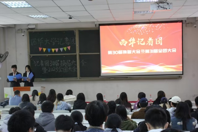 10月24日中午,西華大學(xué)記者團(tuán)第30屆換屆大會(huì)暨2023全團(tuán)大會(huì)在4A204舉行。在場(chǎng)嘉賓有黨委宣傳部副部長(zhǎng)翟元平、黨委宣傳部老師以及校史館講解團(tuán)等兄弟社團(tuán)代表和記者團(tuán)全體成員。本次大會(huì)由王軒、徐怡瑤主持。