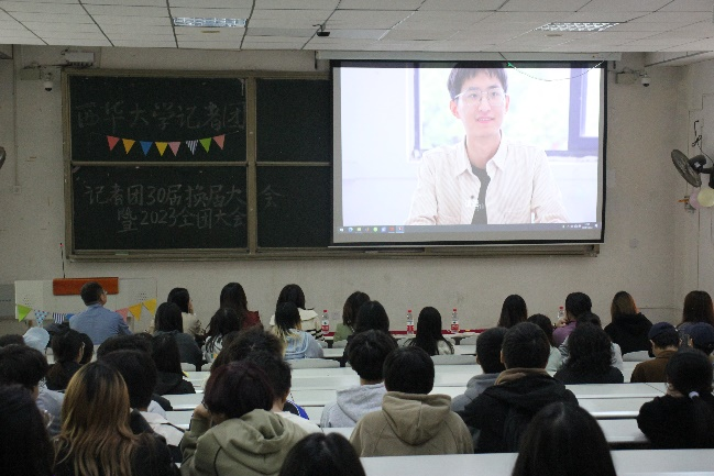 大會(huì)播放了記者團(tuán)2023年招新視頻,以幽默有趣的內(nèi)容讓大家全方位了解記者團(tuán),展現(xiàn)了記者團(tuán)全體成員的拼搏精神和團(tuán)內(nèi)溫暖和諧的氛圍。