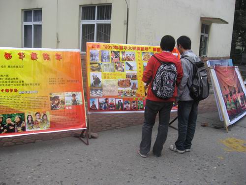 ??? 11月11日,由學生工作部主辦的以“慶祝彝族年”為主題的彝族文化圖片展在一食堂旁舉行。