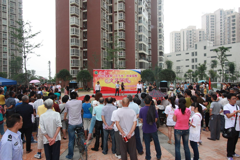 ????? 為豐富我校周邊社區(qū)文化生活,增強(qiáng)我校同學(xué)社會(huì)實(shí)踐能力,踐行雷鋒精神,6月28日,我校2012暑期“三下鄉(xiāng)”雷鋒志愿服務(wù)團(tuán)走進(jìn)紅光鎮(zhèn)新城佳苑社區(qū),為社區(qū)居民帶來了一場精彩紛呈的文藝演出。 ????? 文藝演出于下午3:00正式開始,我校志愿者精心準(zhǔn)備的文藝表演吸引了眾多社區(qū)居民駐足觀看。充滿青春氣息的爵士舞蹈首先亮相,為本次文藝演出預(yù)熱,隨后展示在大家面前的歌曲串燒、古箏表演、二胡表演、雙節(jié)棍表演等節(jié)目同樣也精彩絕倫,引來了社區(qū)群眾的連連稱贊。最后,動(dòng)感活力的啦啦操表演更是將本次文藝演出推向了高潮,同時(shí)也為此次演出畫上了圓滿的句號(hào)。 ????? 本次“三下鄉(xiāng)”社會(huì)實(shí)踐文藝演出作為“文化下鄉(xiāng)”的重要項(xiàng)目,充分貫徹今年全國暑期“三下鄉(xiāng)”社會(huì)實(shí)踐“踐行雷鋒精神,唱響青春旋律”的主題,通過高校文化走進(jìn)社區(qū),我校為社區(qū)群眾提供豐富多彩的志愿服務(wù)。據(jù)悉,我校暑期“三下鄉(xiāng)”雷鋒志愿服務(wù)團(tuán)還將在該社區(qū)陸續(xù)開展一系列的社區(qū)服務(wù)。