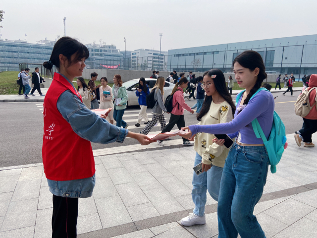 志愿者發(fā)放宣傳單