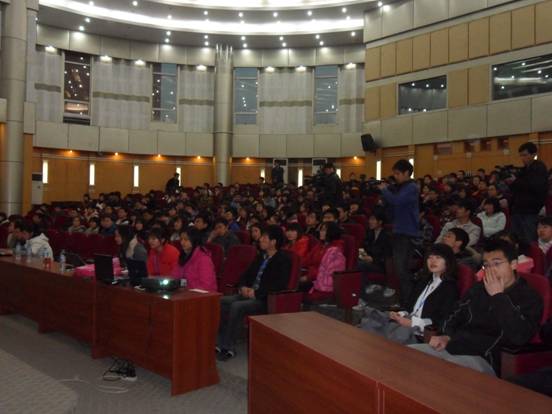 ???? 3月15日晚19:00,由能環(huán)學(xué)院學(xué)生會主辦的“能環(huán)?新講堂”第一期講座在四教報告廳成功舉辦。本期主講人——愛思英語網(wǎng)創(chuàng)建人周玉亮老師就英語學(xué)習(xí)和個人成長這一主題給同學(xué)們帶來了一場精彩的講座。 ???? 周老師從“上大學(xué)做什么”、“為什么學(xué)習(xí)英語”、“怎么學(xué)英語”等幾個方面對個人成長與英語學(xué)習(xí)作了獨(dú)到的講解。他指出,上大學(xué)不僅是學(xué)習(xí)知識,更重要的是能結(jié)交朋友,能鍛煉動手實(shí)踐能力,更能開闊視野。學(xué)習(xí)英語不僅有助于就業(yè)創(chuàng)業(yè),也能豐富個人物質(zhì)與精神,了解中國與世界。周老師強(qiáng)調(diào),學(xué)英語不只是為了四六級考試,也是為了個人更好的成長,學(xué)習(xí)英語也是有方法可尋的,需要勤積累才能有所收獲。周玉亮老師用幽默的語言向同學(xué)們講解了記憶詞匯的方法,以及聽力、口語、閱讀、寫作等幾個方面的學(xué)習(xí)技巧。 ???? 通過本次講座,讓同學(xué)們更好的了解到英語學(xué)習(xí)的方法和技巧,同時也增強(qiáng)了學(xué)好英語的信心。 講座現(xiàn)場 同學(xué)們認(rèn)真聆聽責(zé) 編:曾益 |