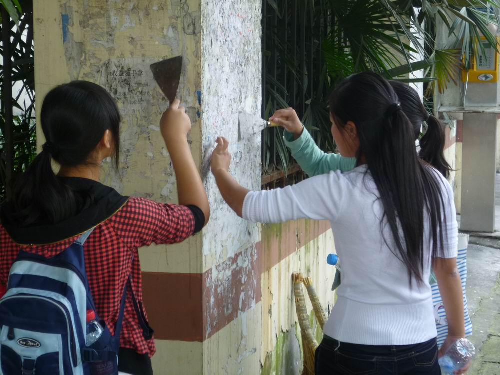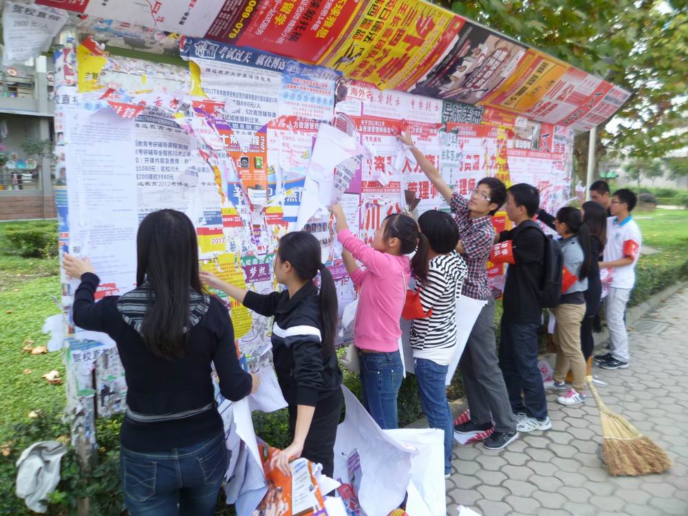 ????? 為讓西華校園更加整潔美麗,10月16日中午12:00點,我校勤工助學的170多名同學主動參與了 “清理校園牛皮癬,美化校園環境”活動。 ????? 同學們分成八個小組,分別負責清除新老教學樓、四大食堂、學生住宿區域、學校各處張貼欄、電話亭及教職工宿舍周圍的“牛皮癬”。活動過程中,大家分工明確,勤工助學各崗位的黨員干部發揮帶頭作用,率先垂范,各位同學積極參與,不怕苦不怕累。有的同學徒手撕下粘貼得異常牢固的小廣告;有的同學用濕抹布把頑固的地方打濕便于清理;有的同學用鐵鍬鏟下粘貼廣告時的膠水、膠布;有的同學收集撕下來的垃圾,每位同學都干得熱火朝天,忙得不亦樂乎。 ????? 在清除過程中,同學們遇到了很多困難:有些張貼欄上貼了很多廣告,同學們撕了一層又一層,用鐵鏟鏟了很長時間,有的同學手上起了泡;有些張貼欄廣告貼的位置比較高,緊緊靠自身身高不能完全清除,但同學們沒有因此而放棄,而是快速想辦法,就近借凳子和梯子,想法設法把自己負責的區域打掃得干干凈凈。 ????? 雖然現在時節已經進入深秋,但當天卻是艷陽高照,氣溫驟升,儼然有秋老虎的陣勢,很多同學經過一段時間勞動,早已全身酸痛,衣衫濕透,臉上也汗珠漣漣,卻沒有一位同學皺眉,也沒有一位同學抱怨參加活動耽誤了自己的周末休息時間。大家都懷著為師生服務的心態積極地向校園的“牛皮癬”宣戰!“西華是我們共同的家園,也是我們幾萬學子共同生活的地方,我們有責任也有義務讓我們的家園變得更美麗,讓我們的校園變得更整潔。雖然很熱很累,但是能為校園做一些有意義的事情,貢獻一份力,我覺得很開心。”一位正在清掃垃圾的同學說到,在強光照射下,他的額上已經沁出許多汗珠,但他臉上卻掛滿了微笑。 ????? 經過勤工助學同學近七個小時的清理工作,校園內的小廣告基本上被清理干凈。路過的老師及同學看到美化后的校園,都不由自主地夸贊同學們吃苦耐勞,踏實肯干。 清理“牛皮癬”(1) 清理“牛皮癬”(2) 清理“牛皮癬”(3) 責 編:翟元平 |