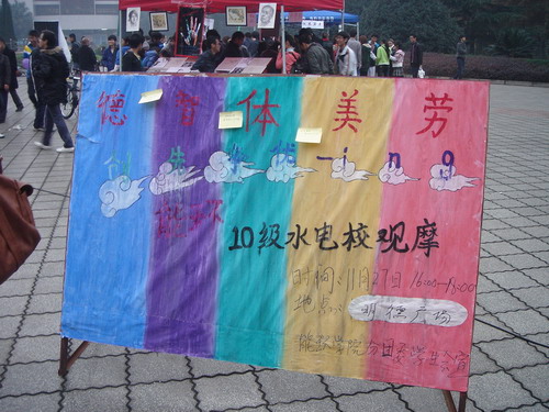 | ????? 11月27日,能源與環境學院2010級水利水電工程專業組織的團觀摩活動在明德廣場舉行?;顒右浴耙黄饋碚业?、智、體、美、勞”為主題。能源與環境學院學生會主席團、校團委組織部和各兄弟學院組織部成員以及2010級水電專業的學生參加了活動。 ????? 活動突破了學校團觀摩活動傳統的晚會模式,創新性地采用了戶外活動的方式。活動按照主題分成德、智、體、美、勞五個版塊,各版塊設置了豐富多彩的游戲?;顒娱_始前,全體到場人員齊唱團歌,2010級水電專業的同學帶來了太極、古箏彈奏等精彩才藝表演,表演結束后各個板塊的活動也同時開展。最受同學們歡迎的是“勞”版塊的快樂廚房和“智”版塊的下棋比賽。到場同學積極參加各種游戲,并從中收獲了很多。最后,本次趣味橫生的團觀摩在一場激烈而又精彩的問答比賽中圓滿結束。 ????? 本次活動充分體現出“創先爭優”思想對大學生的領航作用,讓同學們充分認識到了“創先爭優”精神的重要性。同時也讓大學生開始重視全面發展自我;開始從德、智、體、美、勞五個方面去鍛煉自己,提高自己的綜合素質。