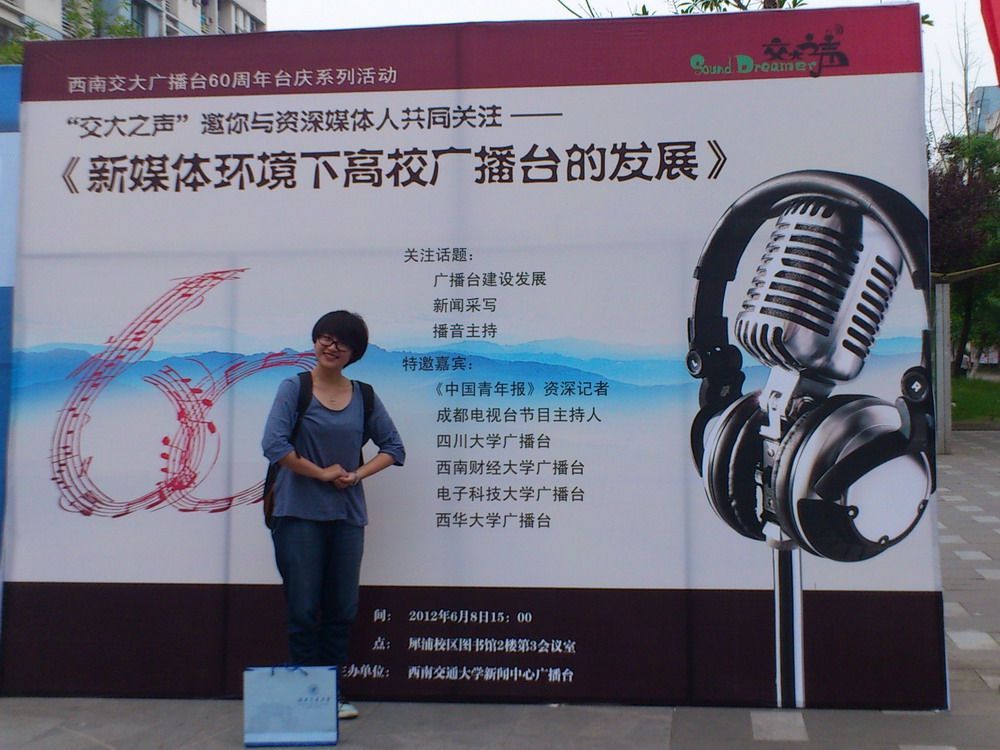 6月8日下午3點,我校廣播臺成員應邀參加了西南交通大學廣播臺舉行的60周年臺慶系列活動——“新媒體環(huán)境下高校廣播臺的發(fā)展”論壇活動。我校廣播臺副臺長孫照西在論壇上作交流發(fā)言。 論壇首先由西南交通大學黨委副書記朱健梅致辭。朱副書記對前來參加此次論壇的嘉賓成員表示熱烈的歡迎,同時對西南交通大學廣播臺取得的成績表示肯定,并祝愿和鼓勵西南交通大學廣播臺越辦越好。 在結(jié)束了精彩的致辭后,西南交通大學宣傳統(tǒng)戰(zhàn)部副部長、新聞中心副主任朱正安發(fā)表了以“新媒體時代高校廣播發(fā)展的應對策略”的演講。朱正安深度剖析了高校廣播出現(xiàn)的問題和癥結(jié),并表示高校廣播必須轉(zhuǎn)變模式,敢于突破,敢于改變,合理的運用新媒體平臺,鞏固廣播在傳媒界的地位。 朱正安副部長精彩的發(fā)言之后,分別由《中國青年報》駐成都站記者王鑫昕,西南財經(jīng)大學廣播臺臺長隗聰,電子科技大學廣播臺臺長孫思邈,四川大學廣播站負責人孫乾,西華大學廣播臺副臺長孫照西及西南交通大學峨眉校區(qū)廣播臺指導老師孫鴻林等發(fā)表了對“新媒體環(huán)境下高校廣播臺的發(fā)展”的主題演講。 西華大學廣播臺副臺長孫照西作主題發(fā)言。她從西華廣播簡介、西華廣播重點發(fā)展方向、關(guān)于網(wǎng)絡電臺構(gòu)思和實踐心得三個方面總結(jié)了西華大學廣播臺在新媒體環(huán)境下的發(fā)展方向以及心得,并對西南交通大學廣播臺60周年臺慶表示了衷心的祝福。她風趣幽默的臺風引起臺下陣陣掌聲,在座各高校廣播臺對于西華大學廣播臺取得的成績紛紛表示祝賀并對我校建設的網(wǎng)絡電臺產(chǎn)生極大興趣, 表達了將來我校廣播臺學習經(jīng)驗的意愿。 論壇最后,由西南交通大學廣播臺臺長朱曉敏介紹了該校廣播臺的組成和機制,闡述了在新媒體的大環(huán)境下高校廣播也不會失去原有地位的原因。最后,她代表西南交通大學廣播臺感謝蒞臨本次論壇的所有嘉賓。 另悉,西華大學廣播臺成員于當日晚7點30參加了由西南交通大學新聞中心廣播臺主辦、西南交通大學學生工作處協(xié)辦的“聲音穿越60年”主題詩歌朗誦晚會。 通過參加此次西南交通大學廣播臺60周年臺慶系列活動,我校廣播臺成員加強了同西南交大、電子科技大學、四川大學、西南財經(jīng)大學等學校的溝通交流,并在此次活動中受益良多。
