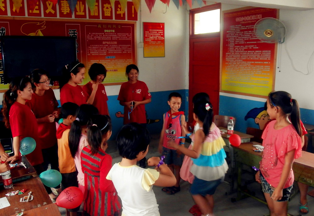 ????? 6月28日上午,西華大學黨委宣傳部學生傳媒中心西華社一行14人從學校出發,開始了赴遂寧市大英縣回馬鎮大學生暑期“三下鄉”社會實踐活動。 ????? 下午3:00,西華社“三下鄉”隊伍順利到達回馬鎮,并首先開展了“關愛留守兒童”的相關活動。在回馬鎮明德小學彭燕老師的帶領下,關愛留守兒童的活動順利舉行。明德小學三年級一班和二班共19名留守兒童高興地圍坐在學校專設的“留守兒童之家”教室里,與西華社成員一起參加了此次活動。首先,在西華社成員的引導下,孩子們依次做了簡單的自我介紹,輕松愉悅的開場讓所有的孩子們很快融進了本次活動中。隨后,大家開展了“氣球超人”、“水果蹲”、“親情寄語”、“畫說生活”等趣味活動,留守兒童積極參與其中,體驗合作的快樂。在“親情寄語”活動中,西華社隊員們發給每個孩子一張明信片,讓他們寫下最想對在外務工父母說的話,“爸爸媽媽我想你們了,你們快點回來”,“爸爸媽媽,我好想和你們一起度過假日”……這樣簡短和心酸的話,道出了留守兒童們的心聲。此外,西華社也給這19名留守兒童贈送了筆、筆記本、卡片、明信片等小禮物。活動期間,西華社的14位隊友還與留守兒童分別做了一對一的交流。本次在明德小學“留守兒童之家”的活動在留守兒童快樂的舞蹈中結束。 ????? 活動結束后,西華社學生記者還對專門負責學校留守兒童工作的彭燕老師做了采訪。從彭老師口中了解到,在明德小學460多位學生中,就有207位留守兒童,對此,學校為解決留守兒童學習成績差,與人交流少,親情感淡漠等現狀,開展了如教師一對一幫扶制度,“留守兒童之家”每周固定活動日等具體措施,為留守兒童的成長提供了幫助。同時彭老師也希望社會上有更多人關心留守兒童,讓留守兒童們感受到社會溫暖。 ?????? 此次關愛留守兒童的活動受到了明德小學老師、學生以及學生監護人的歡迎和好評。明德小學的領導、老師們希望本次活動能給留守兒童們帶去啟發,讓他們知道在社會上有很多人在關心、幫助他們,讓他們更好地學習和生活,并健康快樂地成長。 ????? 關愛留守兒童是西華社此次暑期“三下鄉”社會實踐的第一個活動,此后西華社成員們還將陸續開展大學生村官采訪調查、與當地基層宣傳工作者開展交流會等活動。