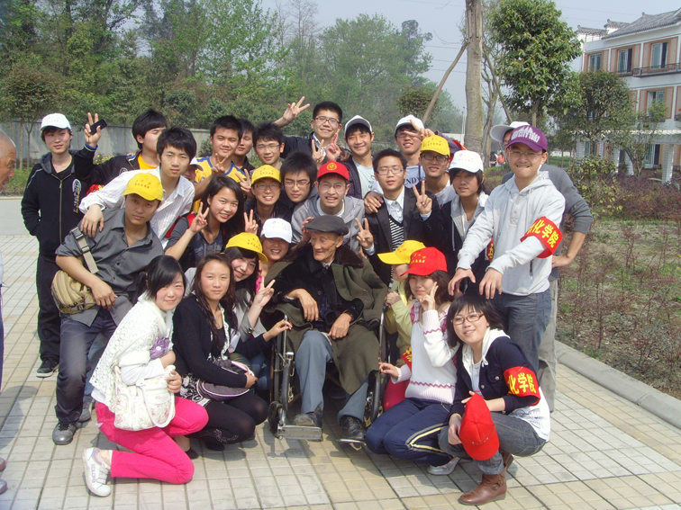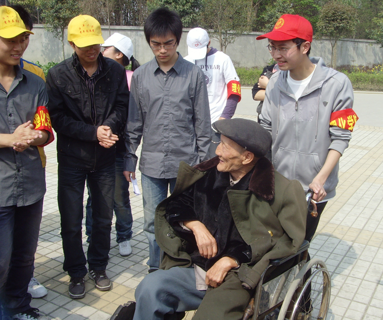 ????? 3月20日,物理與化學學院、外國語學院和材料科學與工程學院志愿者服務隊聯合開展了“向雷鋒同志學習,讓愛走進敬老院”的愛心活動。????? 志愿者服務隊一行50余人懷著滿心的期待,來到郫縣團結鎮敬老院。此時的敬老院,去除了昔日的寧靜,充滿了歡聲笑語與青春活力,久違的笑顏重新綻放在了老人們寫滿滄桑的臉上。一聲聲“爺爺”、“奶奶”,讓他們倍感溫馨與幸福。志愿者們牽著爺爺奶奶的手,聽他們訴說著,和他們交談著,開啟他們心中那扇塵封記憶的大門,讓青春的陽光驅除他們心中晦澀的記憶。民歌、小品、朗誦、葫蘆絲、雙節棍等精彩的表演,博得了老人們的陣陣掌聲。
