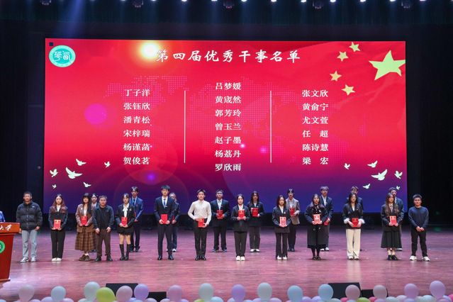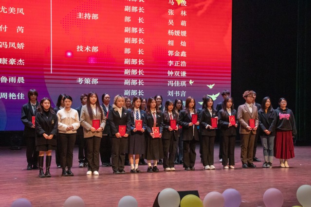 緊接著,主持人宣讀第四屆學生組織優秀干事和優秀干部名單;宣讀第五屆學生黨務工作站、團委、學生會、新媒體中心、廣播臺、社團管理聯合會、協會干部名單;宣讀第五屆團委副書記、學生會主席團、廣播臺臺長團、新媒體中心主任團、社團管理聯合會主席團名單,蒞臨現場的領導和老師為其頒發聘書并合影留念,為過去一年的工作畫上了圓滿句號,也為新的一年的學生組織的發展延續開篇,臺下觀眾掌聲不斷,現場氣氛達到高潮。