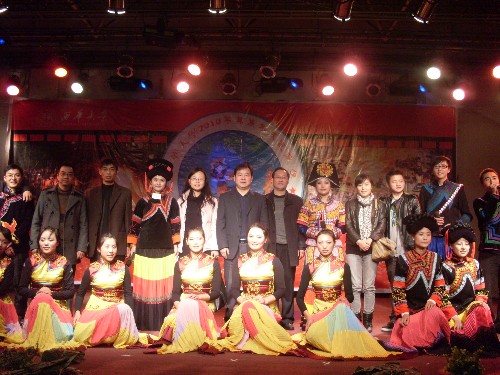 在一首期盼團(tuán)圓的彝文歌曲中晚會(huì)拉開(kāi)了帷幕。晚會(huì)節(jié)目精彩紛呈,充分展示了彝族文化的獨(dú)特魅力,歡快活躍的彝鄉(xiāng)民歌《趕圩歸來(lái)啊哩哩》更是博得現(xiàn)場(chǎng)陣陣掌聲,將本次晚會(huì)推向了高潮。受邀而來(lái)的兄弟高校的同學(xué)們精心準(zhǔn)備的演出也毫不遜色,電子科技大學(xué)的王曉龍帶來(lái)的歌曲《卓瑪》和西華師范大學(xué)的阿牛阿呷帶來(lái)的歌曲《日都迪薩》等均讓觀眾深切感受到獨(dú)特的彝族文化氛圍。在晚會(huì)上,中國(guó)古典文化的節(jié)目也亮點(diǎn)頗多,竹笛奏曲《夢(mèng)里水鄉(xiāng)》和古箏曲目《寒鴉戲水》精湛演繹了傳統(tǒng)文化的意蘊(yùn),將觀眾帶入悠遠(yuǎn)深長(zhǎng)的意境。 最后,在謝幕曲《美酒敬親朋》的歌聲中,彝族同學(xué)們手端酒杯走到臺(tái)下,向嘉賓誠(chéng)懇地敬上美酒。至此,我校2010年彝族年文藝晚會(huì)圓滿結(jié)束。 ? 鏈接:彝族年,彝語(yǔ)稱為“庫(kù)斯”,“庫(kù)”即年、“斯”即新,意思是新年,是大小涼山彝族傳統(tǒng)的祭祀兼慶賀性節(jié)日。彝族年為3天,一般選在農(nóng)歷十月或莊稼收割完畢的節(jié)日,是彝族人民用于祭祀或慶祝的一個(gè)盛大的節(jié)日。節(jié)慶期間,男女青年或點(diǎn)燃松木制成的火把,到村寨田間活動(dòng),邊走邊把松香撒向火把照天祈年,除穢求吉;或唱歌、跳舞、賽馬、斗牛、摔跤;或舉行盛大的篝火晚會(huì),徹夜狂歡。 ?????????????????????????????????????? ![]() 責(zé) 編:王蜀蘇 |