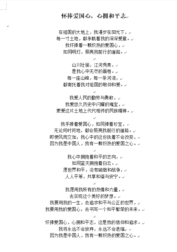 為增強青年學生的民族自豪感和自信心,以文促情,通過文字的形式抒發(fā)愛國情懷和珍惜和平愿望,宜賓校區(qū)于11月中旬至12月初,開展了“懷捧愛國心,心擁和平志”征文比賽。