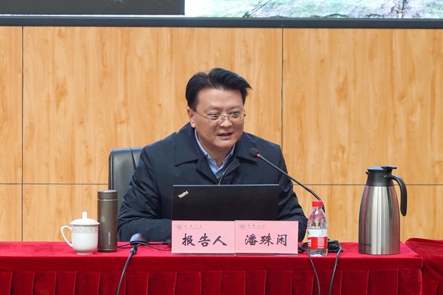我校文學與新聞傳播學院院長潘殊閑教授以“傳承巴蜀文化 建設文化強省 勇擔時代使命”為題,圍繞源遠流長、璀璨奪目的巴蜀文化,四川推動中華優秀傳統文化與巴蜀文化傳承發展的實踐,西華大學推動中華優秀傳統文化和巴蜀文化傳承發展的機遇與挑戰三個方面,進行了系統闡述和深入解讀。潘教授在報告中全面系統解讀了巴蜀文化,強調了巴蜀文化在中華文化中的重要地位。他指出,巴蜀文化具有多元性和互動性,在長期的互動中彼此的滲透和融合,形成了獨具特色的文化體系。報告梳理了四川在推動中華優秀傳統文化與巴蜀文化傳承發展方面所做的實踐,以巴蜀文化的傳承弘揚為視角,介紹了建設文化強省的有關思考和建議。報告還從辦學定位與規模、學科專業、海外合作平臺、學科研究平臺等方面,分析了學校在推動中華優秀傳統文化和巴蜀文化傳承發展上的優勢,同時也指出了面臨的挑戰與困難,希望秉承“知難而進、自強不息”的西華精神,進一步激活全校教職員工干事創業的積極性、主動性、創新力和創造力,在中華民族現代文明的建設征程上,勇擔時代使命,作出無愧于這個時代的貢獻。
