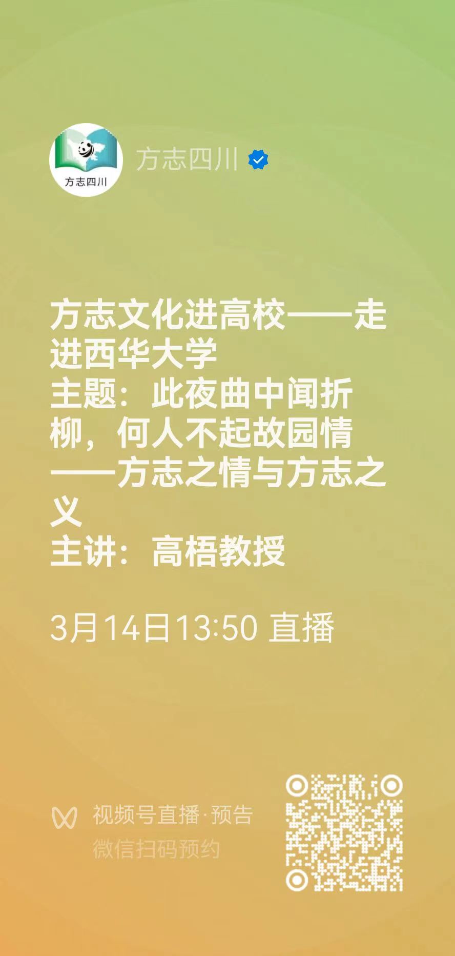 “方志四川”視頻號直播預告,歡迎掃碼預約