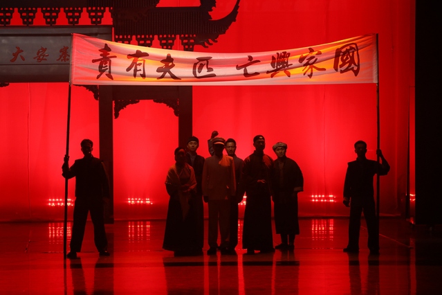 話劇《大安寨》由自貢市歌舞曲藝演藝公司出品,是一部取材于真實歷史的作品。1944年全國“節約獻金救國運動”中,人口不足20的四川小城自貢捐款1.2億,創下了全國最高紀錄。劇本采用“三一律”的創作手法,將地點設定在“大安寨”這一具有象征寓意的地點。故事以鹽商家族對“上山還是下山”“辦學還是獻金”等問題的沖突接續展開,暗含著中國知識分子對國家、民族未來不同態度的刻畫,展現了從辛亥革命到抗日戰爭后期,他們在每一次歷史關頭的抉擇。從滿懷激情投身革命到救民于水火的夢想破滅,他們逐漸墮入云霧中。與此同時,大后方的青年和人民群眾卻逐漸匯聚成新的革命洪流。