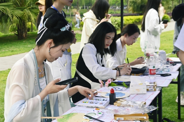 四月,是春天最美的詩篇,也是相逢的好時節。4月13日,西華大學第二屆學生傳統文化節活動在天籟湖畔拉開帷幕。本次活動以“弘揚傳統文化,賡續中華文脈”為主題,通過繪風箏、畫團扇、奏器樂、做手工、品茶味、書法體驗等一系列精彩活動,吸引了眾多西華學子參與。“此次活動內容形式豐富,參與感十足,不僅讓大家有機會近距離領略中華優秀傳統文化的獨特魅力,更加深我們對中華傳統文化的認同感、歸屬感。”現場一名同學講道。