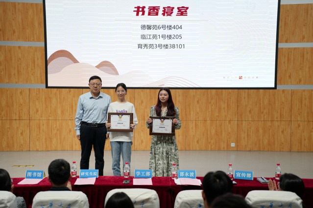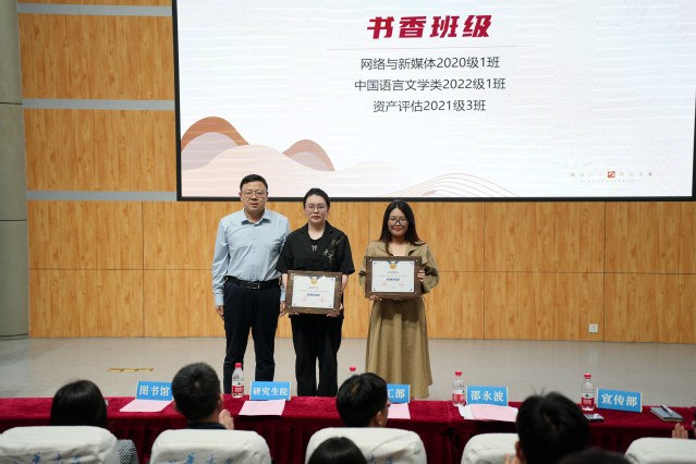 圖書(shū)館館長(zhǎng)彭國(guó)莉宣讀了《關(guān)于表彰2024年度優(yōu)秀讀者的決定》。《決定》授予梁志凱等13位同學(xué)“進(jìn)館之星”榮譽(yù)稱號(hào),授予周揚(yáng)君等13位同學(xué)“閱讀之星”榮譽(yù)稱號(hào),授予陳紫瑩等13位同學(xué)“服務(wù)之星”榮譽(yù)稱號(hào),授予德馨苑6號(hào)樓404等3個(gè)宿舍“書(shū)香寢室”稱號(hào),授予文學(xué)與新聞傳播學(xué)院網(wǎng)絡(luò)與新媒體2020級(jí)1班等3個(gè)班級(jí)“書(shū)香班級(jí)”榮譽(yù)稱號(hào)。老師們現(xiàn)場(chǎng)為獲獎(jiǎng)同學(xué)和集體頒發(fā)榮譽(yù)證書(shū)及獎(jiǎng)品。