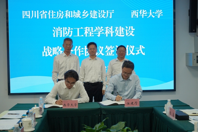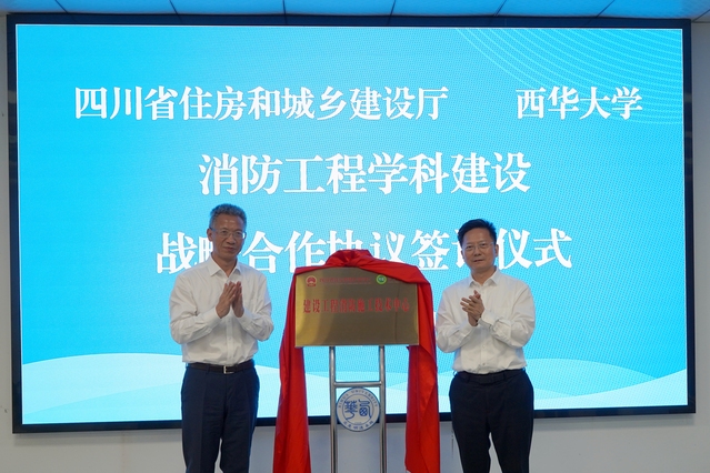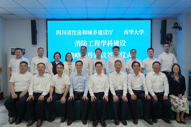 四川省住房和城鄉建設廳黨組成員、副廳長楊搏和副校長費凌分別代表雙方簽訂戰略合作協議。四川省住房和城鄉建設廳黨組書記、廳長田文,校黨委書記劉樹根共同為“建設工程消防施工技術中心”揭牌。根據協議,雙方將秉持“謀劃長遠、優勢互補、互利共贏、攜手同行”的原則,面向全省建設工程消防領域重大需求,依托雙方各自優勢,圍繞消防工程學科建設,構建“政產學研”深度協同的合作機制,進一步加強消防工程學科建設、人才培養、人才交流、科學研究等工作,保障全省建設工程消防審驗人才供給。