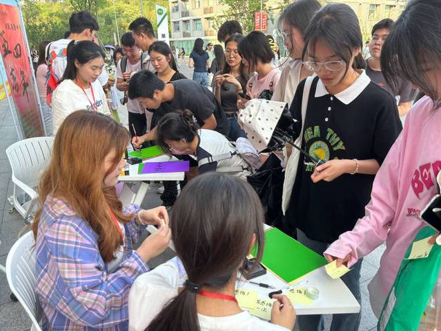宣傳活動現場吸引了大量同學參與,通過用毛筆寫下五四精神經典語錄、名言和感悟,激發廣大學子的愛國情懷,感受先輩強大的精神力量,珍惜當今美好生活的來之不易,引導同學們以更加飽滿的熱情和堅定的信念為國家的發展貢獻青春力量。