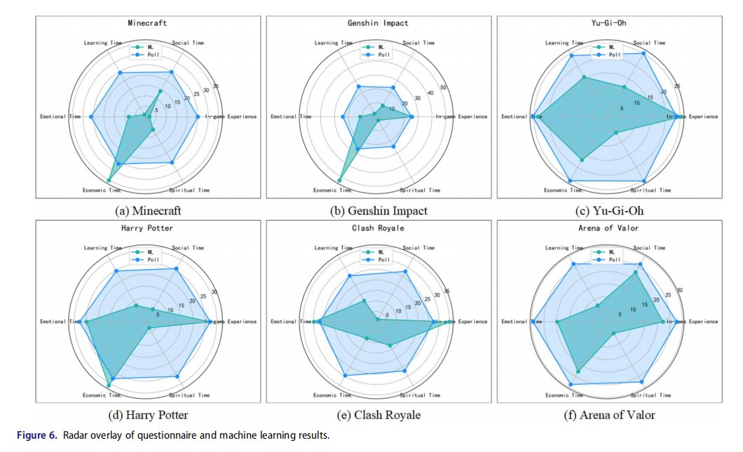 進一步地,通過問卷調查(n=1028)驗證了機器學習的初步結果,并最終確定了玩家的五個主要時間投入維度:游戲內體驗時間、學習投入時間、社交投入時間、情緒投入時間以及經濟投入時間。