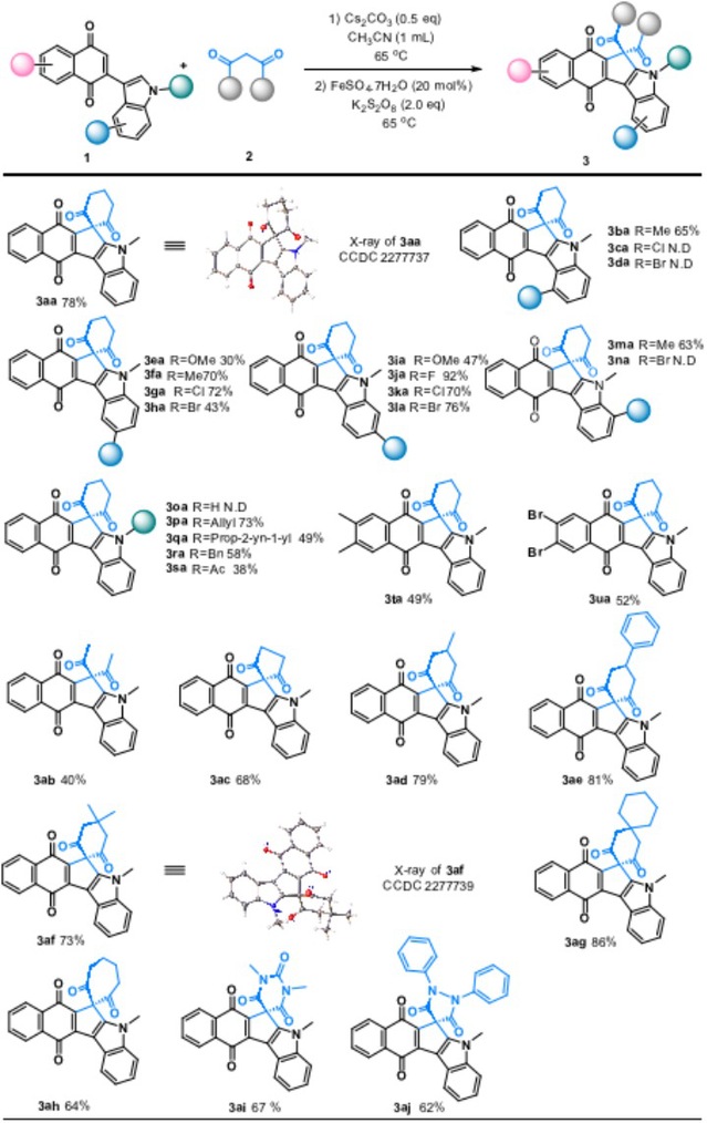 圖2. 醌并環戊[2,1-b]吲哚底物拓展