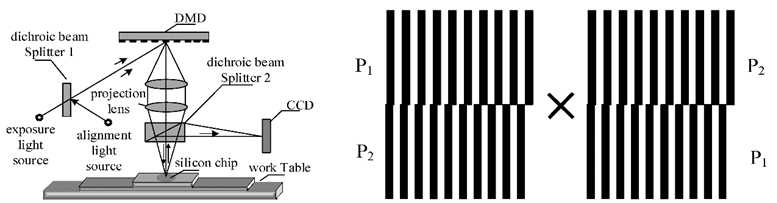 (a) DMD數字光柵對準系統 (b) 數字光柵對準標記