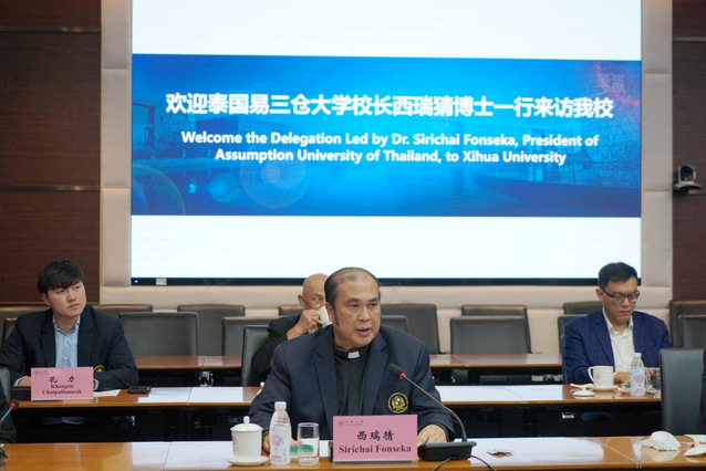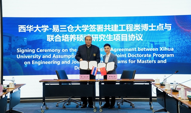 黨委常委、副校長費凌介紹了西華大學曼谷易三倉校區建設情況和兩校合作相關情況。截至目前,已有100名來自易三倉大學的學生在我校完成注冊。學校聘請了易三倉大學多名杰出教授擔任客座教授,易三倉大學也聘請了我校食品與生物工程學院、計算機與軟件工程學院等百余名教授擔任博士生導師,極大地推動了我校博士生導師隊伍建設。未來,我校將進一步做好海外校區建設工作,落實各類人才聯合培養項目,推動兩校教師組建高水平科研團隊,提高兩校科研水平。
