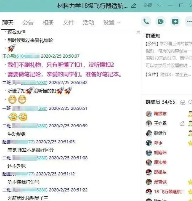 有了前面的準備,接下來就是迎接2月27日上午10點的第一次網絡教學,即使在這之前做好了一切可以做的準備,但是仍然很緊張,夢里夢見的都是課堂混亂的狀態。不過,27日真實的上課狀態卻是十分順利的。每堂課講課時間38分鐘左右,討論7分鐘左右。學生提前告訴我,聽懂了就發一個火箭,沒聽懂就發兩個火箭,這就解決了我擔心的學生掌握程度的問題。