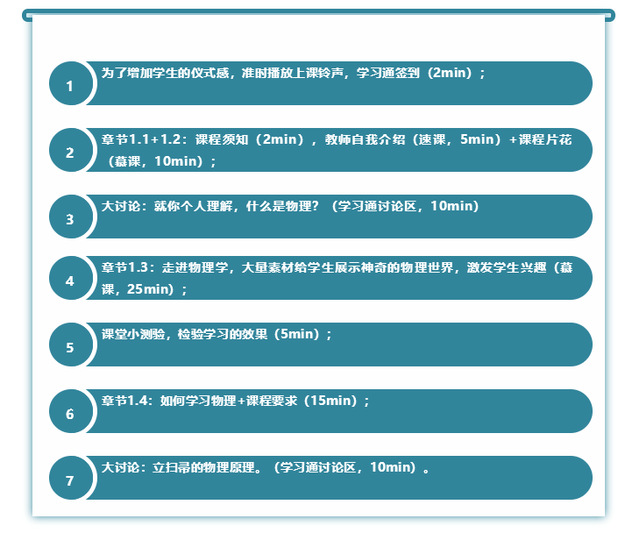 在教學(xué)過程中引入現(xiàn)代先進(jìn)的教學(xué)方法,有效組織教學(xué)。我在教學(xué)中使用“BOPPPS”模式來進(jìn)行教學(xué)設(shè)計(jì):課前發(fā)放通知,預(yù)告課程內(nèi)容,并把教學(xué)目標(biāo)(“O”)在通知中告知,讓學(xué)生知道這節(jié)課要做什么,了解老師對(duì)其的要求。前測(cè)(“P”)的目的是回顧前序知識(shí)點(diǎn),了解學(xué)生的知識(shí)儲(chǔ)備,前測(cè)的題目不易過難或過簡(jiǎn),最好是無需計(jì)算的是非題。導(dǎo)入(“B”)則要求有激趣的功能,用有趣的事件、圖片、視頻引入,比如講解動(dòng)量守恒時(shí),我就播放了神州五號(hào)飛天視頻進(jìn)行導(dǎo)入。參與式學(xué)習(xí)(“P”)關(guān)鍵在于學(xué)生要“動(dòng)”,可設(shè)置情景,讓學(xué)生在探究中學(xué)習(xí);可發(fā)布討論,讓學(xué)生暢所欲言;還可引導(dǎo)學(xué)生在討論區(qū)進(jìn)行簡(jiǎn)單的回應(yīng)。后測(cè)(“P”)是在課堂快要結(jié)束時(shí),對(duì)學(xué)生學(xué)習(xí)目標(biāo)達(dá)成度進(jìn)行檢驗(yàn)。后測(cè)的題目要比前測(cè)難,可以推送限時(shí)計(jì)算題要求學(xué)生解答。總結(jié)(“S”)幫助學(xué)生整合知識(shí)點(diǎn),引導(dǎo)學(xué)生反思學(xué)習(xí)任務(wù)。