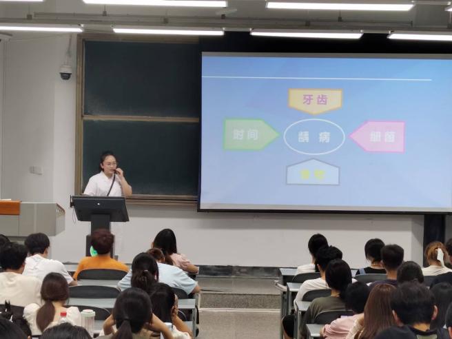 9月19日晚,西華大學醫院和校團委在6B-102教室聯合舉辦了愛牙日口腔健康講座。學校醫院口腔科主治醫師谷天圍繞年輕人容易出現的齲病、牙周病、阻生牙等口腔問題,通過生動的圖例、視頻和逼真有趣的模型,深入淺出地介紹了口腔健康知識,強調了正確刷牙、自我口腔保健、合理膳食以及杜絕不良習慣的重要性。谷醫生的講解受到了學生們的歡迎,大家紛紛表示受益匪淺。