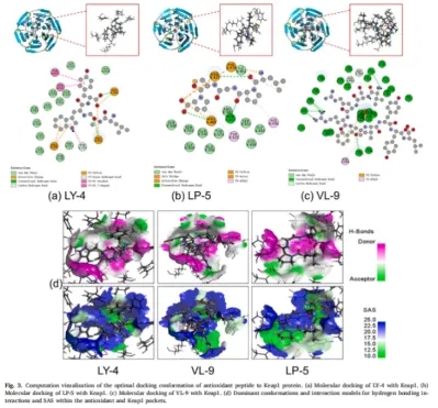 這些結果表明,氫鍵是這些力之間相互作用最重要且最強的因素,此外,殘基Arg 415和Arg 483在抗氧化肽與Keap 1的結合中起著關鍵作用。