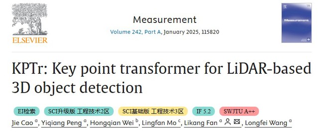 通過引入“Transformer”架構去構建點與點之間的依賴關系,提出了檢測精度更高的目標檢測方法。相關論文在中科院二區top期刊《Measurement》上進行了發表,第一作者為碩士研究生曹捷。