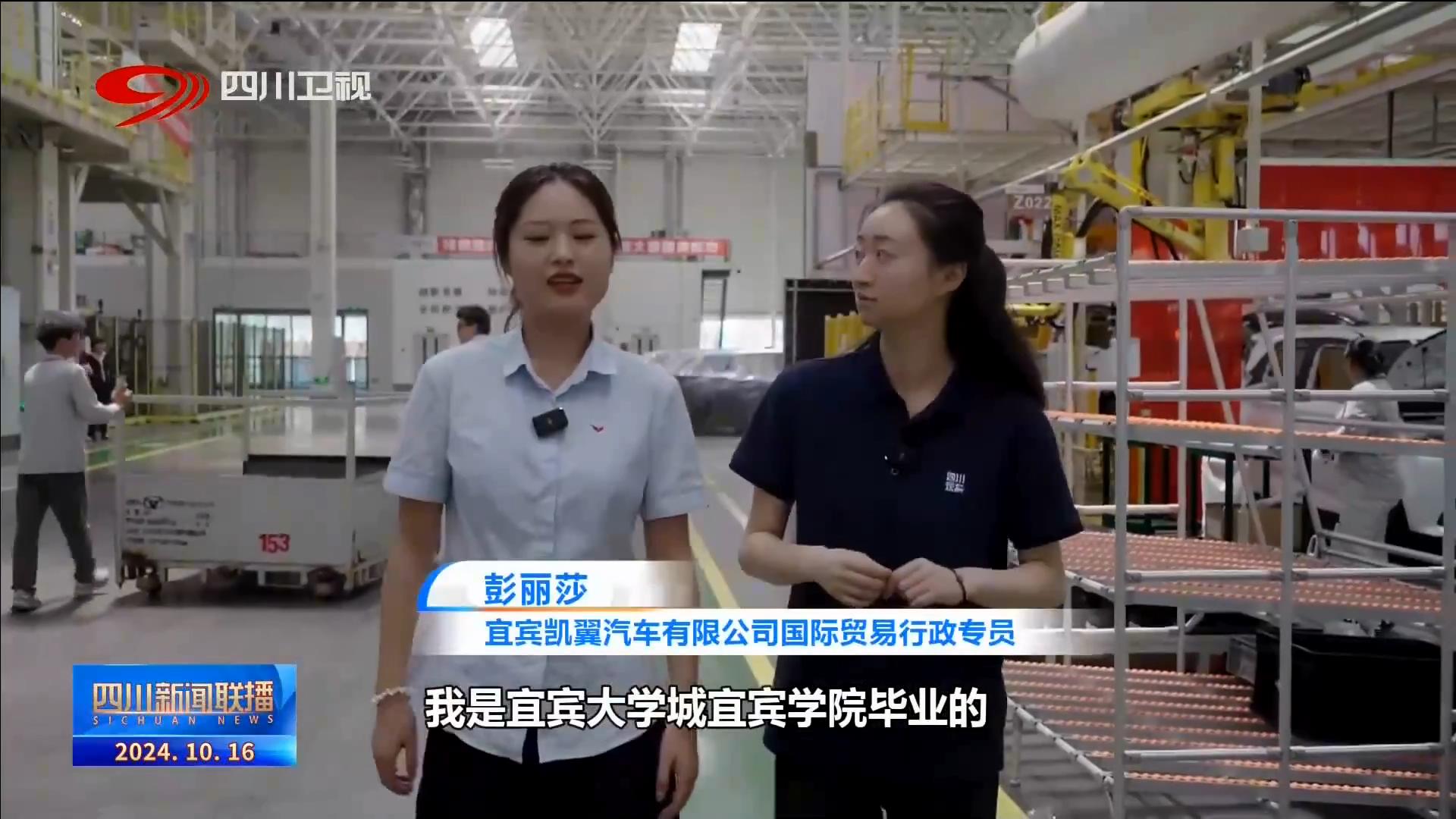 宜賓凱翼汽車有限公司國際貿(mào)易行政專員 彭麗莎:我是宜賓大學城宜賓學院畢業(yè)的,入職已經(jīng)兩年了。(公司)去年出口的汽車已經(jīng)達到了3.5萬輛,足跡已經(jīng)遍布了30多個國家和地區(qū)。去年我就介紹了兩個師弟師妹他們過來,現(xiàn)在也是發(fā)展得還不錯。