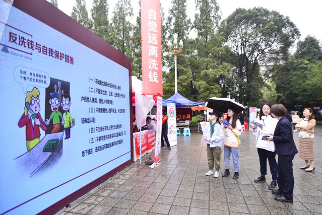 為進一步提升在校學生反洗錢意識和洗錢風險防控能力,增強在校學生配合金融機構開展反洗錢工作的意識,由中國人民銀行郫都支行主辦,中國銀行郫都支行、校團委承辦的2020年郫都區(qū)“反洗錢知識進校園”宣傳活動于9月27日在明德廣場舉行。