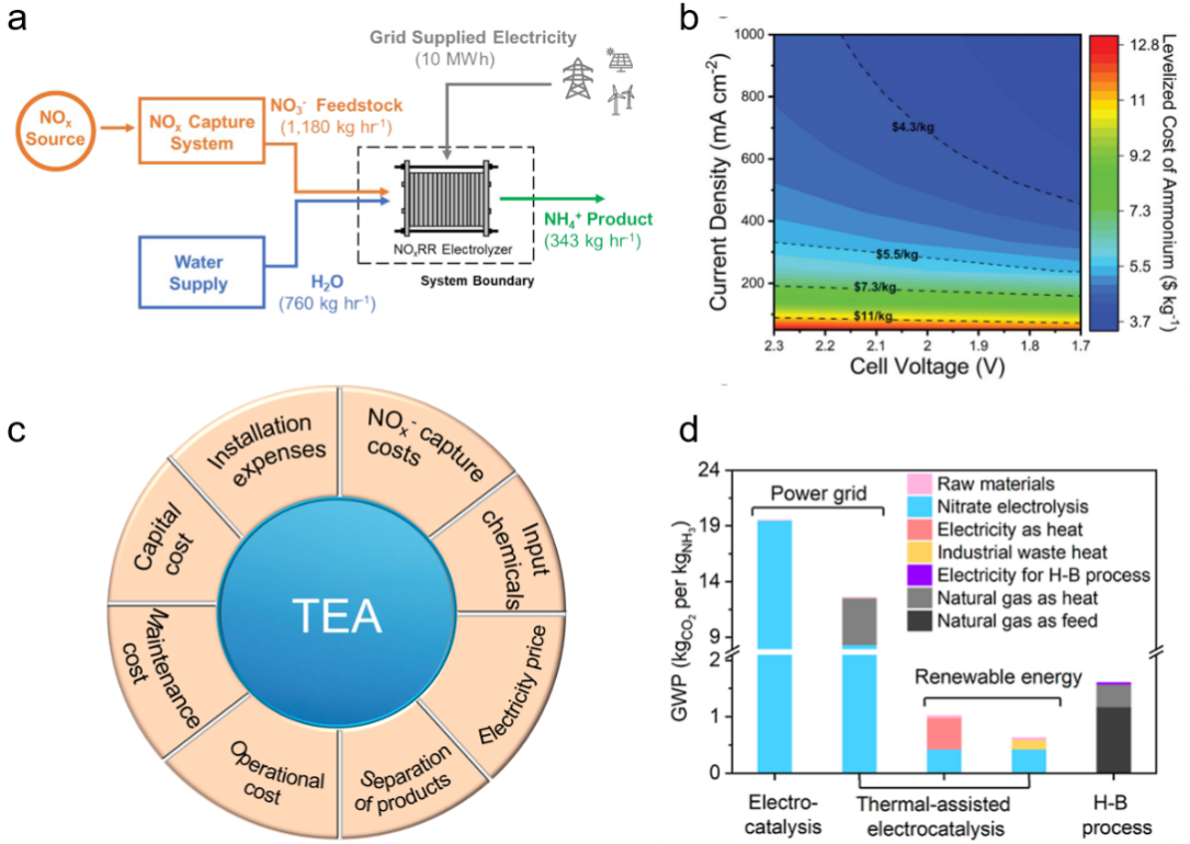 針對于此,本文介紹并系統探討了電催化NOx?還原合成NH3的主流反應機制,旨在為后續高效電催化劑的設計提供指導。隨后,分析和總結了目前電催化NOx?還原(NOx?RR)合成NH3領域的最新突破性進展,重點討論了不同金屬基電催化劑的設計策略。此外,還對電催化NOx?RR合成NH3的潛在商業可行性進行了討論和分析,旨在為這一技術的后續大規模開發和應用提供有價值的見解和參考。最后,指出和強調了該領域仍面臨的挑戰和前景。