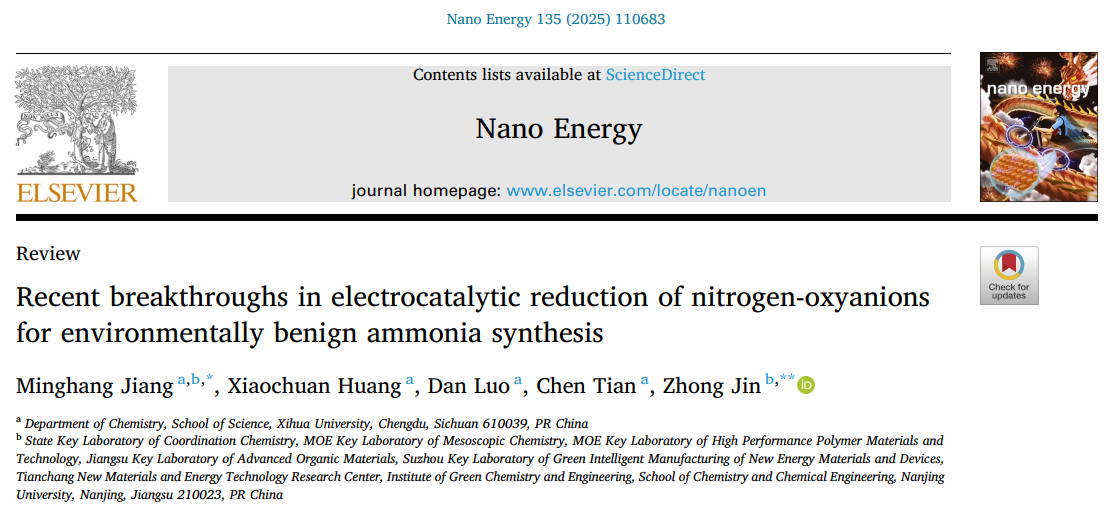 近日,理學院江明航副教授在Nano Energy期刊(中科院一區,IF=16.8)發表題為“Recent breakthroughs in electrocatalytic reduction of nitrogen-oxyanions for environmentally benign ammonia synthesis”的綜述論文。江明航副教授為該論文的第一和通訊作者,西華大學為第一通訊單位。南京大學金鐘教授為該論文的共同通訊作者。