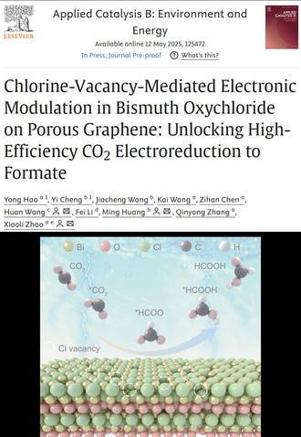 近日,材料科學與工程學院趙小麗博士在SCI一區TOP期刊《Applied Catalysis B: Environment and Energy》(IF=20.3)發表題為“Chlorine-Vacancy-Mediated Electronic Modulation in Bismuth Oxychloride on Porous Graphene: Unlocking High-Efficiency CO2 Electroreduction to Formate”的研究論文?!?/span>Applied Catalysis B: Environment and Energy》是催化、能源環境和材料化工領域公認的頂級期刊,即時影響因子為27。西華大學為第一完成單位,西華大學趙小麗博士為第一通訊作者,廣州大學王歡教授和電子科技大學黃明教授為共同通訊作者,西華大學材料學院2023級碩士研究生郝勇為論文第一作者。