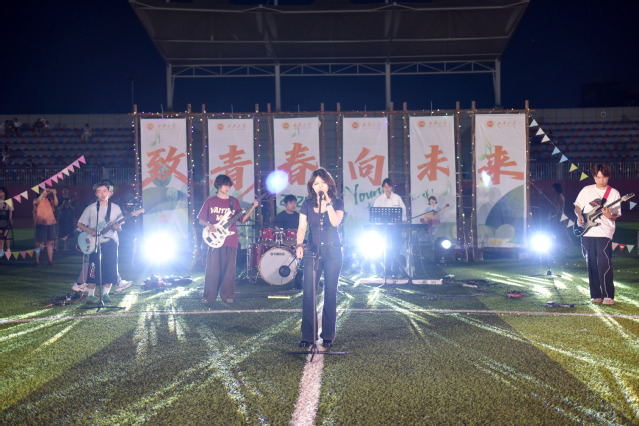6月15日晚,“青春啟航 逐夢遠行 ”畢業季草地音樂會在臨江苑操場上演。黨委常委、副校長費凌,校團委負責人與2000余名師生共同觀看演出。