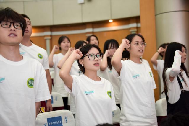 出征儀式上,校團委書記石元鵬介紹了暑期社會實踐和西部計劃志愿者招募工作情況。西部計劃志愿者代表宣誓出征,用莊嚴的承諾彰顯為西部發展貢獻力量的信念與擔當。