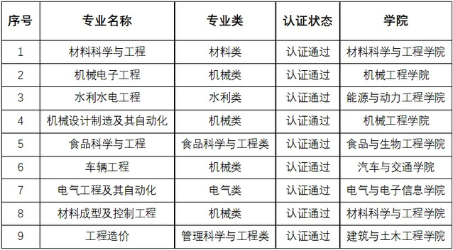 此前,我校有8個專業成功通過中國工程教育專業認證協會、教育部教育質量評估中心的工程教育專業認證,分別是材料科學與工程、機械電子工程、水利水電工程、機械設計制造及其自動化、食品科學與工程、車輛工程、電氣工程及其自動化、材料成型及控制工程。作為我校第9個通過認證的專業,工程造價專業將以此為新起點,持續深化教育教學改革,優化師資隊伍結構,強化專業特色優勢,不斷提升工程造價專業人才培養質量、核心競爭力與行業影響力,為服務國家建設與行業發展輸送更多高素質優秀人才。