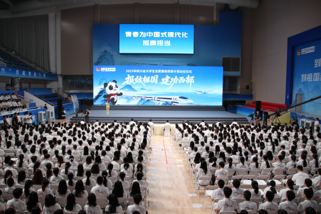 團省委書記唐經天,教育廳二級巡視員陸衛江,人力資源和社會保障廳二級巡視員王成富,團省委副書記張志君,西華大學黨委常委、副校長費凌,四川廣播電視臺黨委副書記劉萌出席儀式,共同為即將奔赴西部基層一線開展志愿服務的志愿者們送行。省委宣傳部、省委社會工作部、財政廳、農業農村廳相關處室負責人,成都平原經濟區有關市、縣團組織負責人以及2025年四川省大學生志愿服務西部計劃志愿者共計1000余人參加活動。