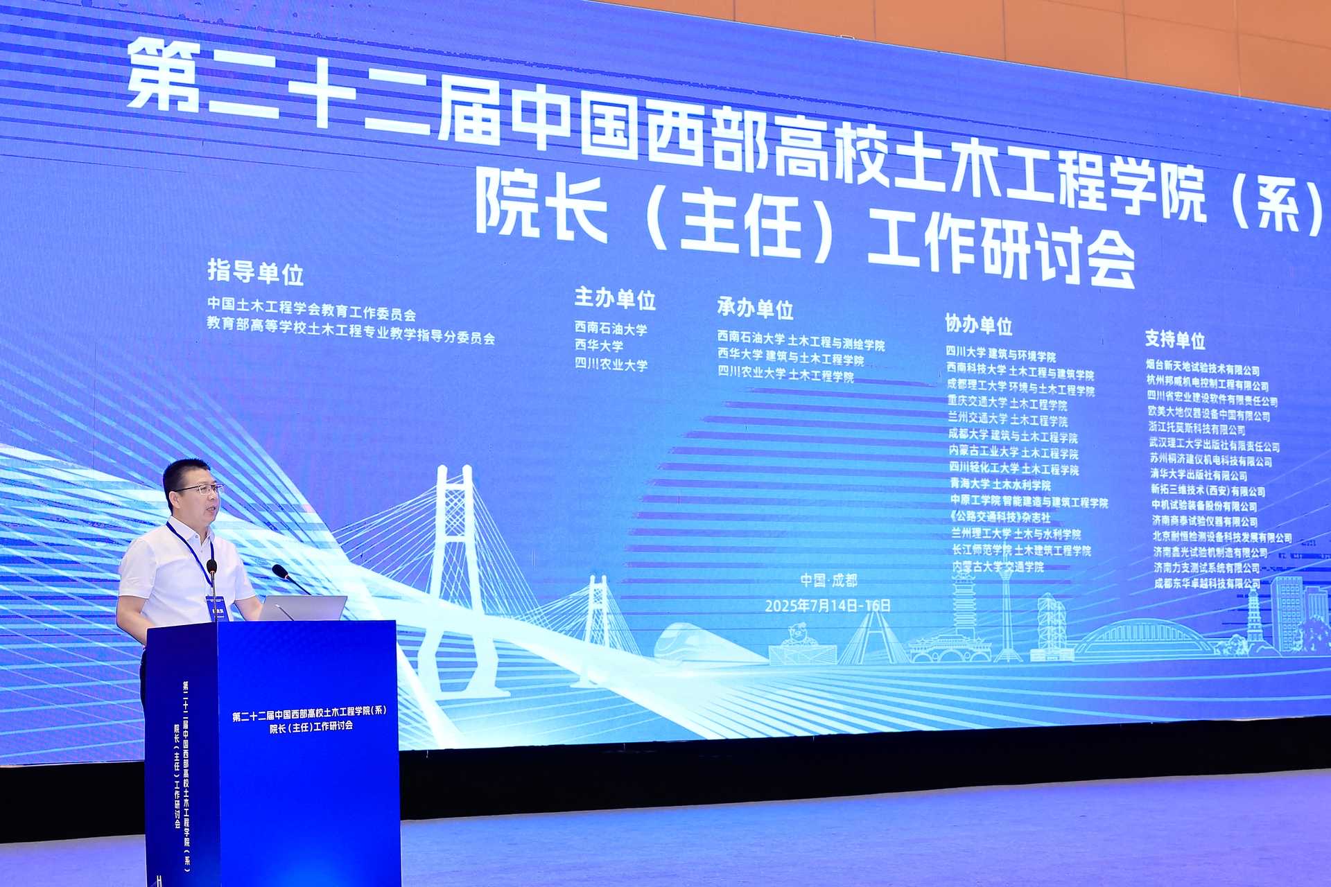 7月14日—16日,由西南石油大學土木工程與測繪學院、西華大學建筑與土木工程學院、四川農業大學土木工程學院聯合承辦的“第二十二屆中國西部高校土木工程學院(系)院長(主任)工作研討會”在成都召開。來自中國東西部地區高校近300位土木工程院校院長(主任)及土木工程專業教指委委員等專家學者齊聚一堂,共同探討新時代背景下土木工程專業的發展路徑與創新實踐,分享人才培養經驗,推動土木工程專業的建設與發展。