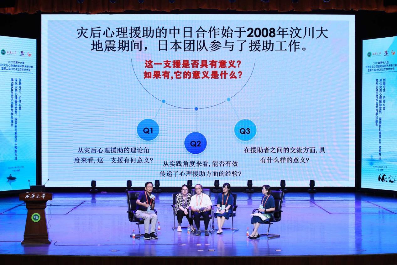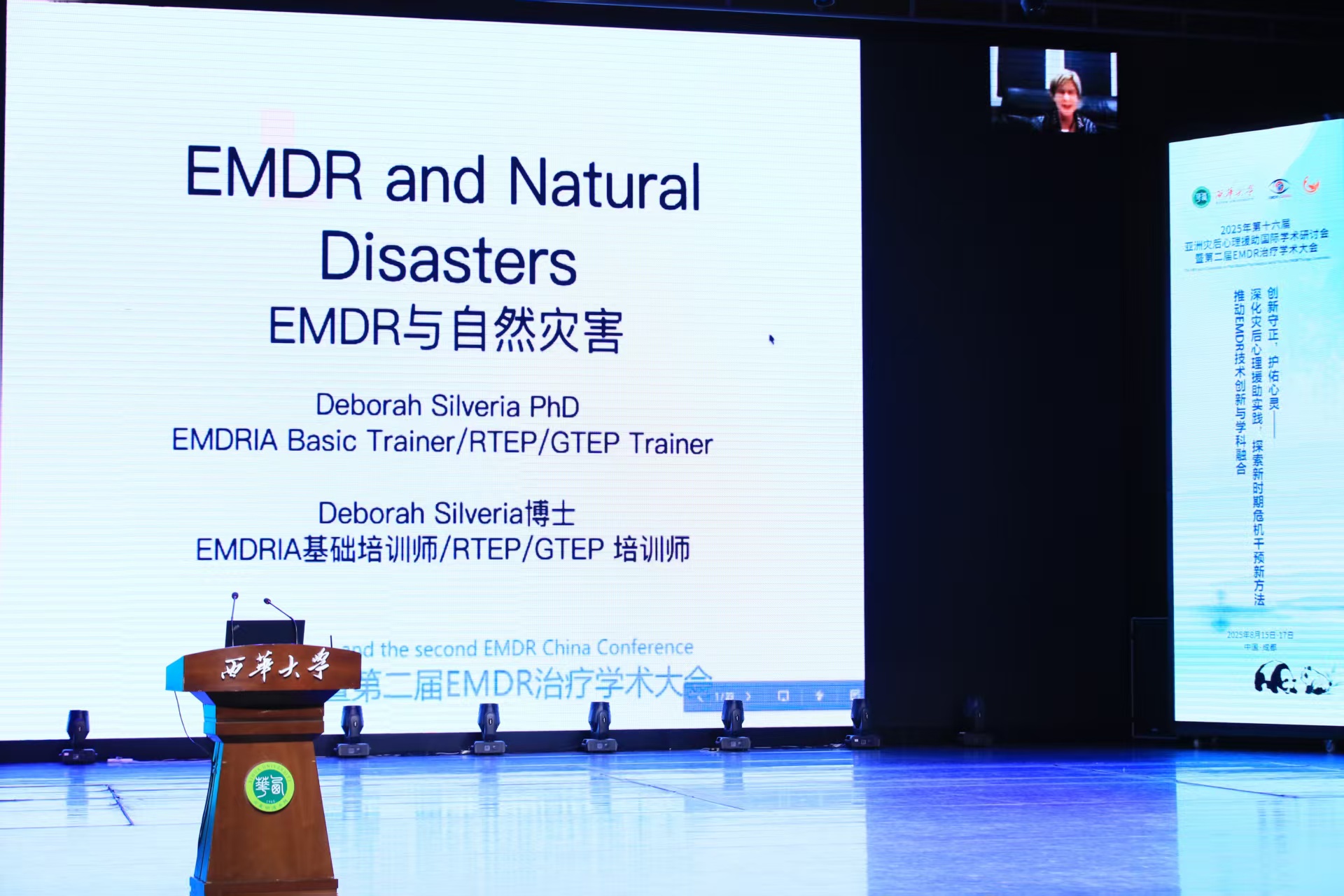 大會特別安排6場主題報告和1場鼎談研討。日本兵庫教育大學名譽教授富永良喜探討了《心理援助與防災減災教育的整合性策略》;美國心理學家Deborah Silveria分享《EMDR在災難中的應用》相關國際經驗;結合系列工作實踐和創新研究,張勁松闡述《EMDR治療道德傷害和自我慈悲》思路舉措;日本EMDR學會理事長市井雅哉介紹《EMDR在日本的發展》;馬來西亞理工大學高級講師陳如湘立足《馬來西亞穆斯林青少年哀傷經驗中的文化與宗教視角》展開分析;中國科學院心理研究所研究員劉正奎展示《從創傷藝術治療到以美潤心》的方法創新。會上,西華大學教授、成都社會心理服務研究中心主任吳薇莉和高橋哲、劉正奎圍繞“地震災后心理援助的國際經驗分享與借鑒”展開深度對話,探索提升區域心理援助水平的可行路徑。