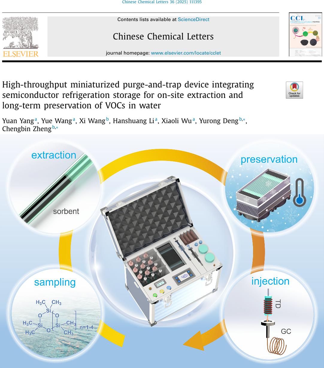 論文“High-throughput miniaturized purge-and-trap device integrating semiconductor refrigeration storage for on-site extraction and long-term preservation of VOCs in water”第一作者為楊媛,通訊作者為四川大學鄧羽蓉博士和鄭成斌教授,西華大學為第一單位。