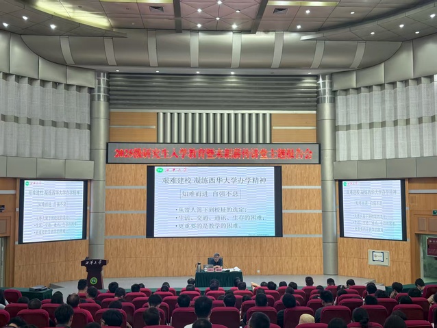 9月18日,秦昌明教授在四教報告廳為2025級全體研究生分批次開展了校情校史教育。他以親歷者視角回溯學校風雨變遷與學科崛起歷程,生動詮釋“俯首甘為孺子牛”的西華精神。報告中穿插校園建設者的感人故事,如“一磚一瓦中的辦學初心”“學科攻堅中的西華韌性”等,引導研究生在歷史脈絡中讀懂“西華溫度”,在使命傳承中錨定學術坐標。